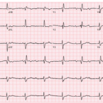 A 43-year-old woman with sharp left-sided chest pain and minimal cardiac risk factors has an initial ECG that is not diagnostic for STEMI. She looks stable, but one feature on…