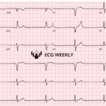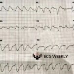 A 64-year-old man presents to the emergency department with palpitations. He was recently found to have an acute MI and is one day s/p RCA stenting. The following ECG is…